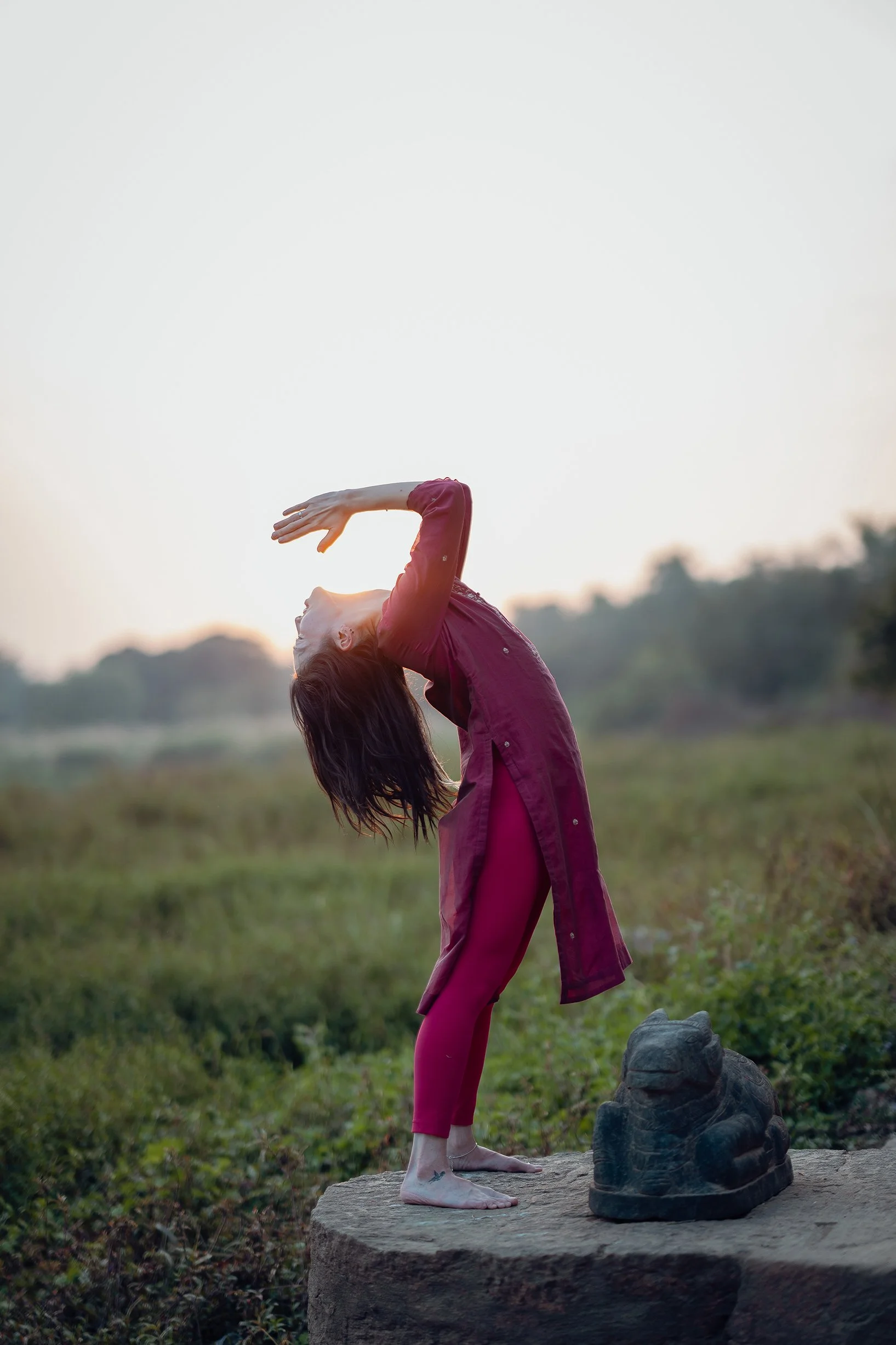 We move slowly. Dynamic Vinyasa meets restorative Yin, creating a rhythm that soothes the nervous system.